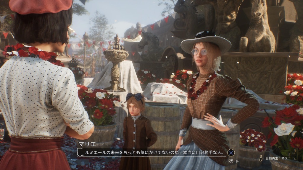 会話の内容はまだわからなかったけど、この世界は「彼女」によって未来が奪われる世界で、ギュスターヴはソフィーを救うためにその世界を変えようとしているみたいな感じ。